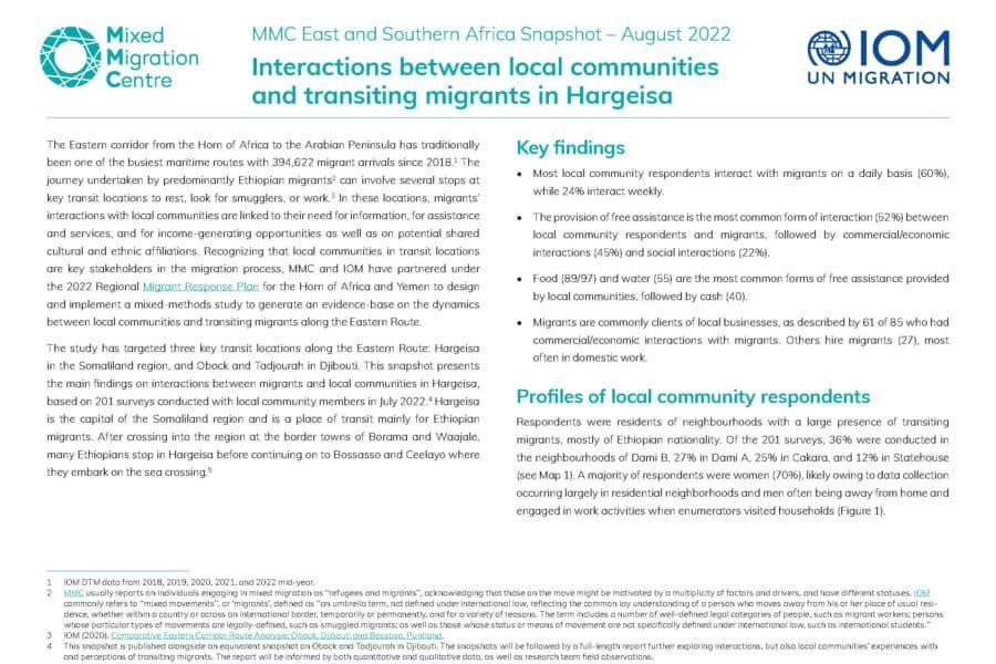 This snapshot presents the main findings on interactions between migrants and local communities in Hargeisa, based on 201 surveys conducted